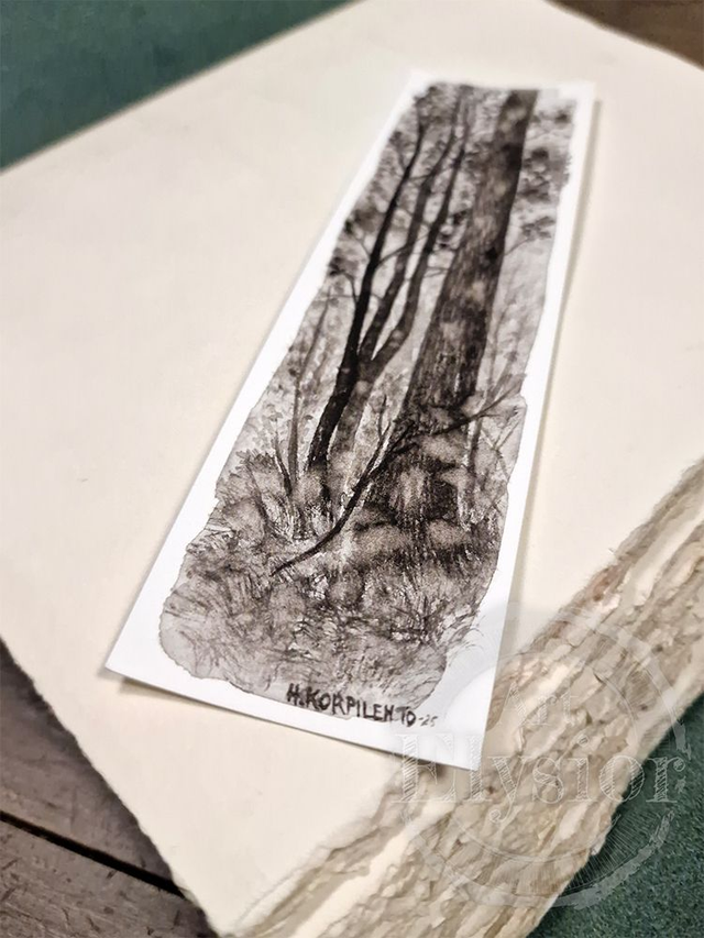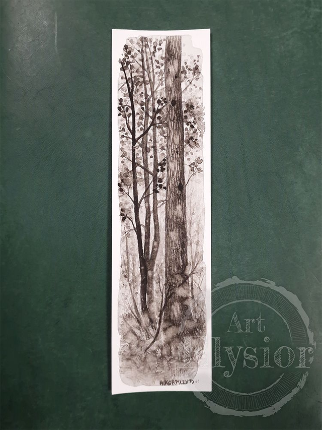 Kolopuu-kirjanmerkki on uniikki hiilimaalaus, jolla lisäät ripauksen taidetta lukuhetkiisi.